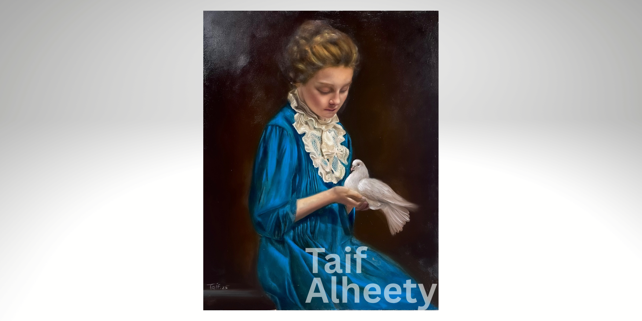 Her work bridges cultural heritage with contemporary expression, delving into themes of identity, memory, and transformation. With a refined sense of composition and painterly detail, Taif creates works that resonate with emotional depth and quiet strength.